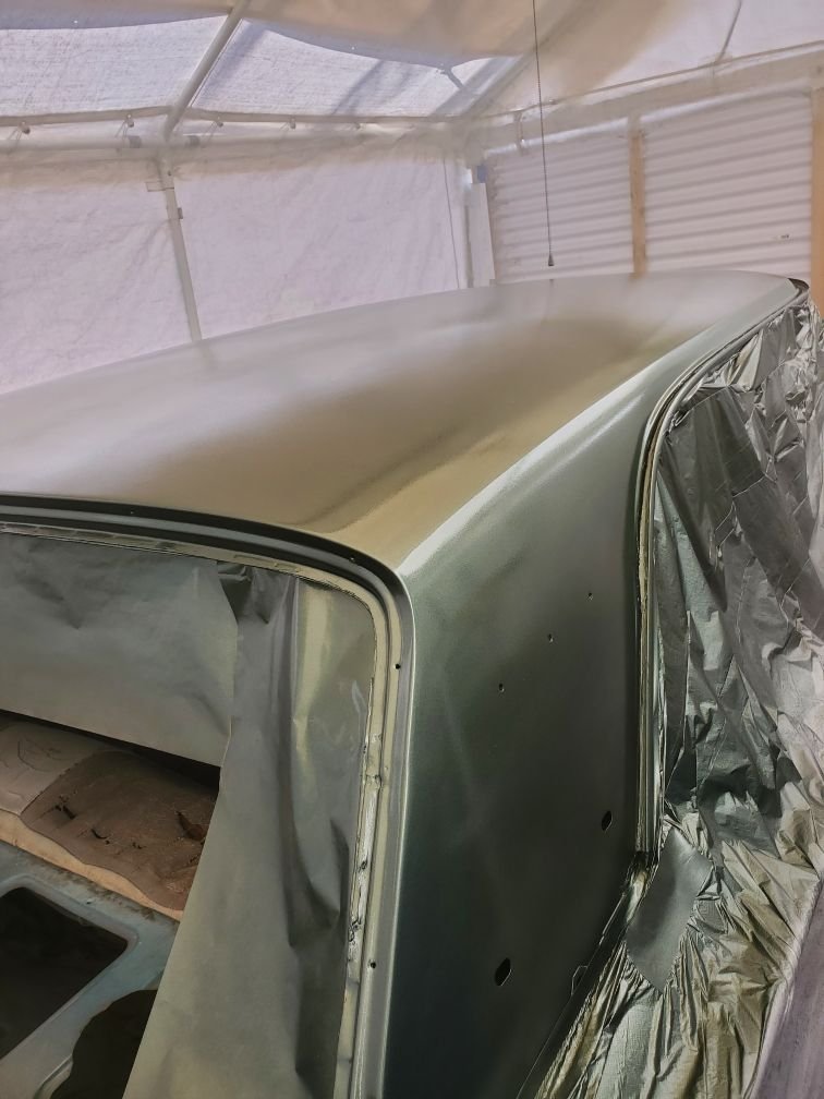 This past Saturday I finally went for it, some of it. Got the roof done, paint is called Fern green metallic, single stage. It laid out nice for being my first pain job, it may have a little orange peel but not bad. I don't know how well it looks dried since I don't have the car in same City I live in, 45 min away from me. I'll find out this weekend when I go back.