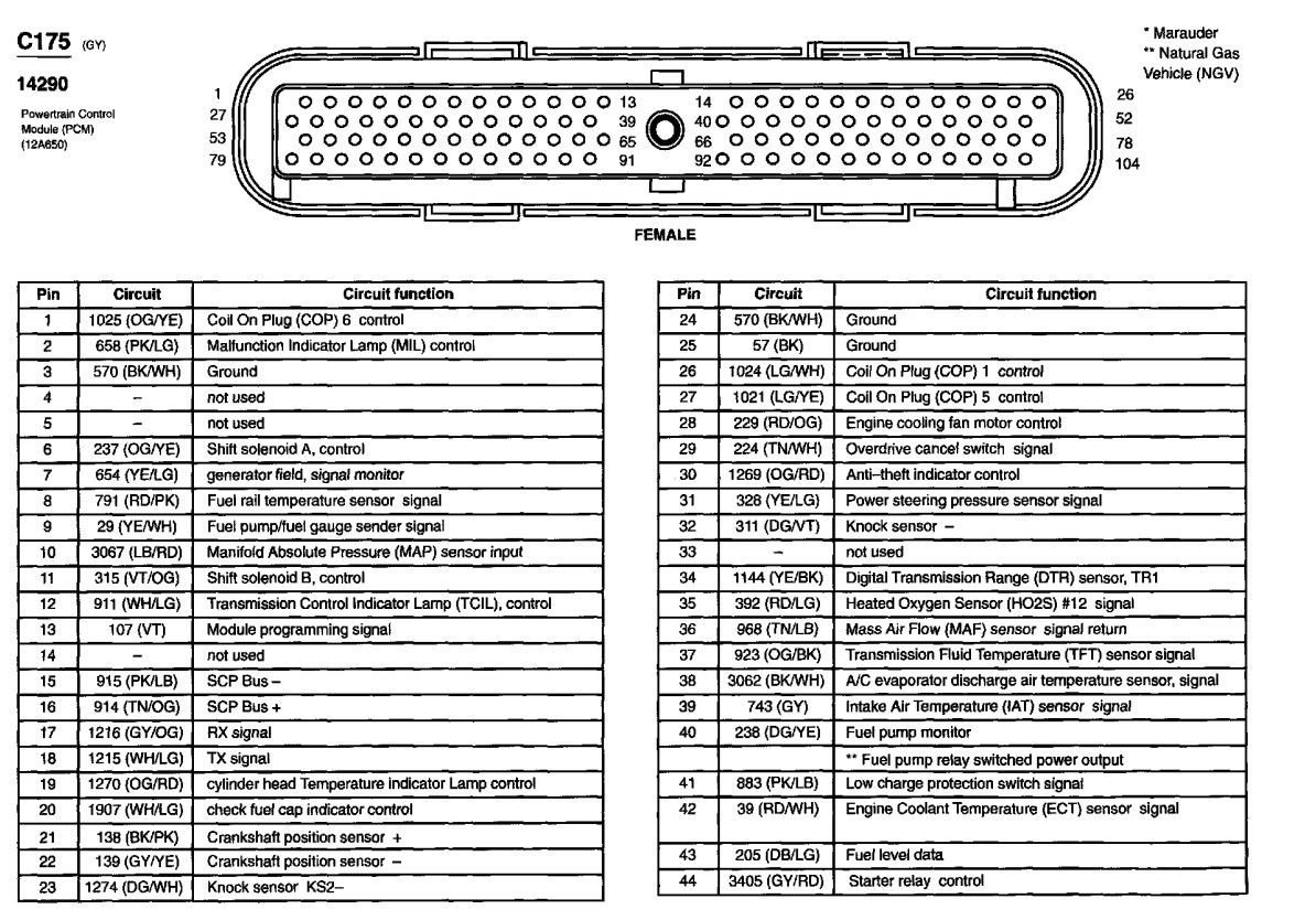 2004 Crown Vic - PCM - Wiring/Pin Connector Diagram