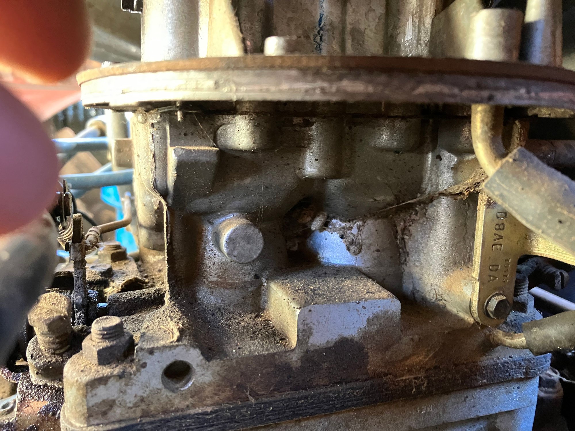 Hi all, hoping someone might know what carb this is so I can get the correct rebuild kit. It has a tag on the back with “D8AE DA” on it but looking up that carb didn’t seem to match mine