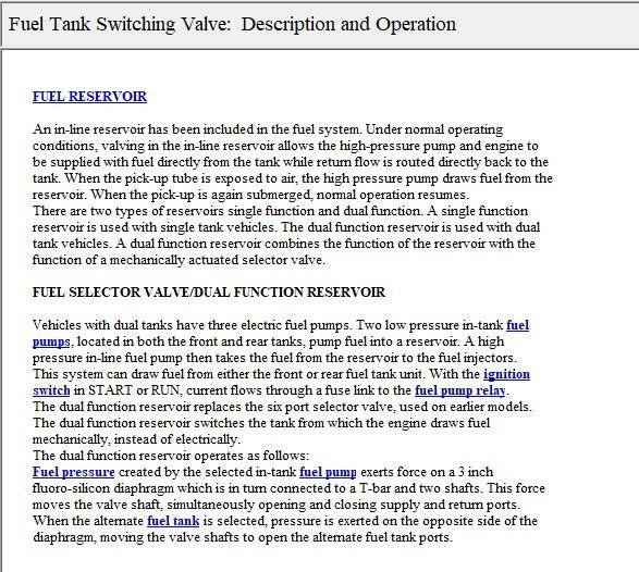 front fuel tank, rear fuel tank, front low pressure fuel pump, rear low pressure fuel pump, diverter valve, fuel filter, and high pressure fuel pump. It does not matter which tank I switch the selector to it will not run. I hear both the high pressure fuel pump and the low pressure fuel pump running for the tank I have selected.