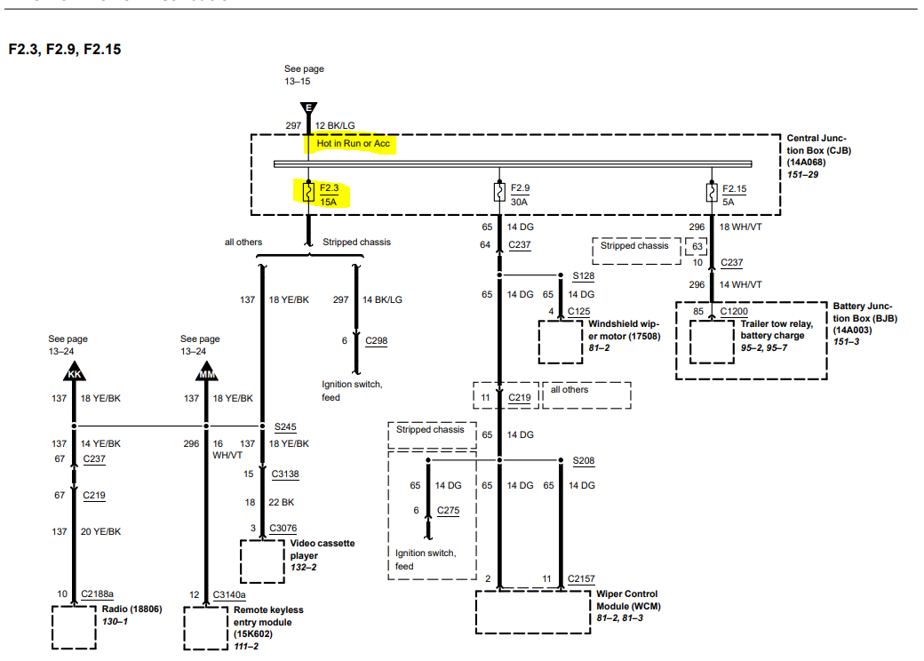 OK this should work, central junction box(interior fuse box) fuse 3 should only have voltage when key is at accessory and run.