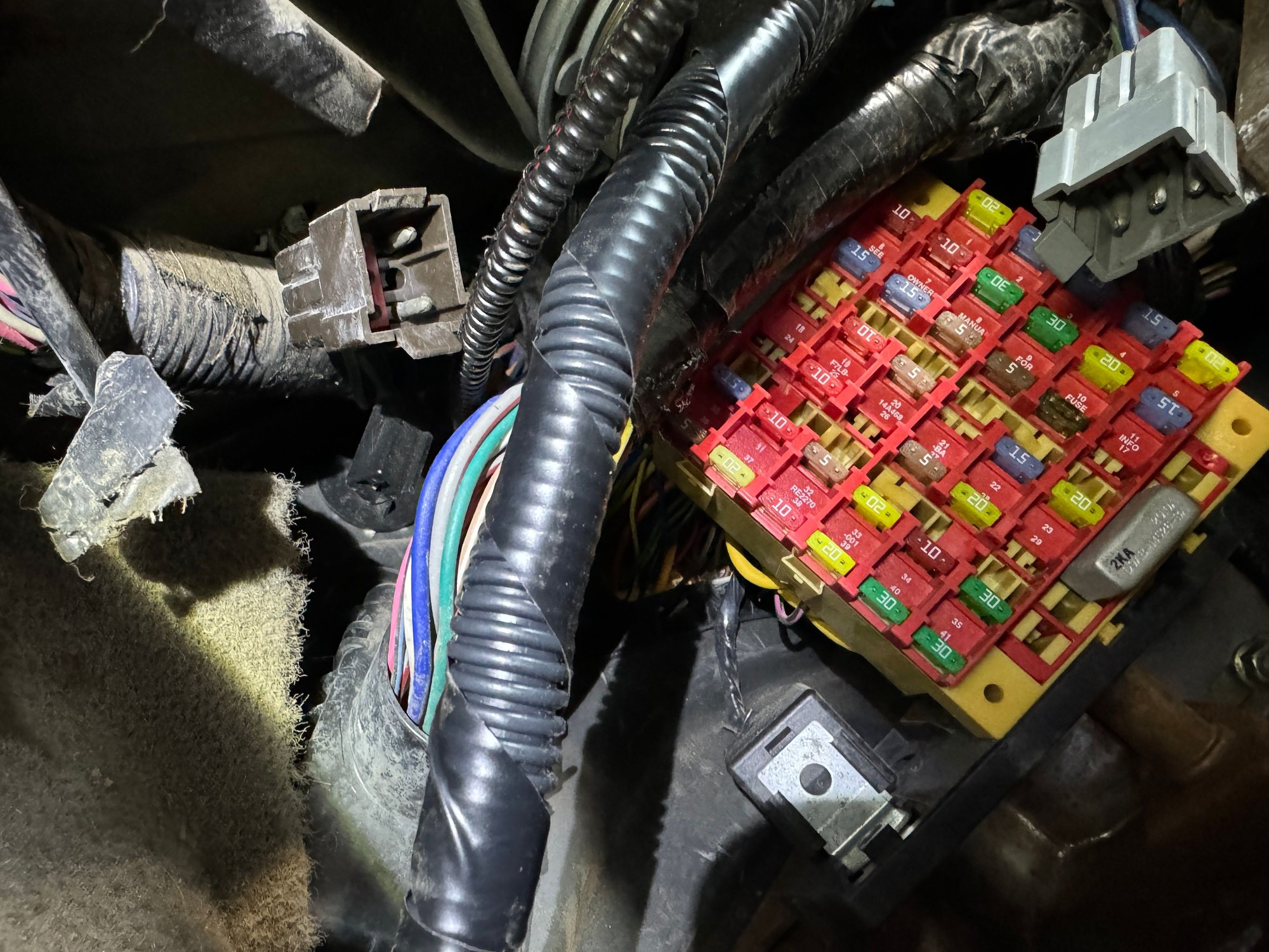 2. The middle round switch with the Yellow wire and Green wire is connected to an air compressor frame mounted under the truck. Yellow wire is coming from the harness you just figured out for me and the green wire is going to the pressure switch on the tank