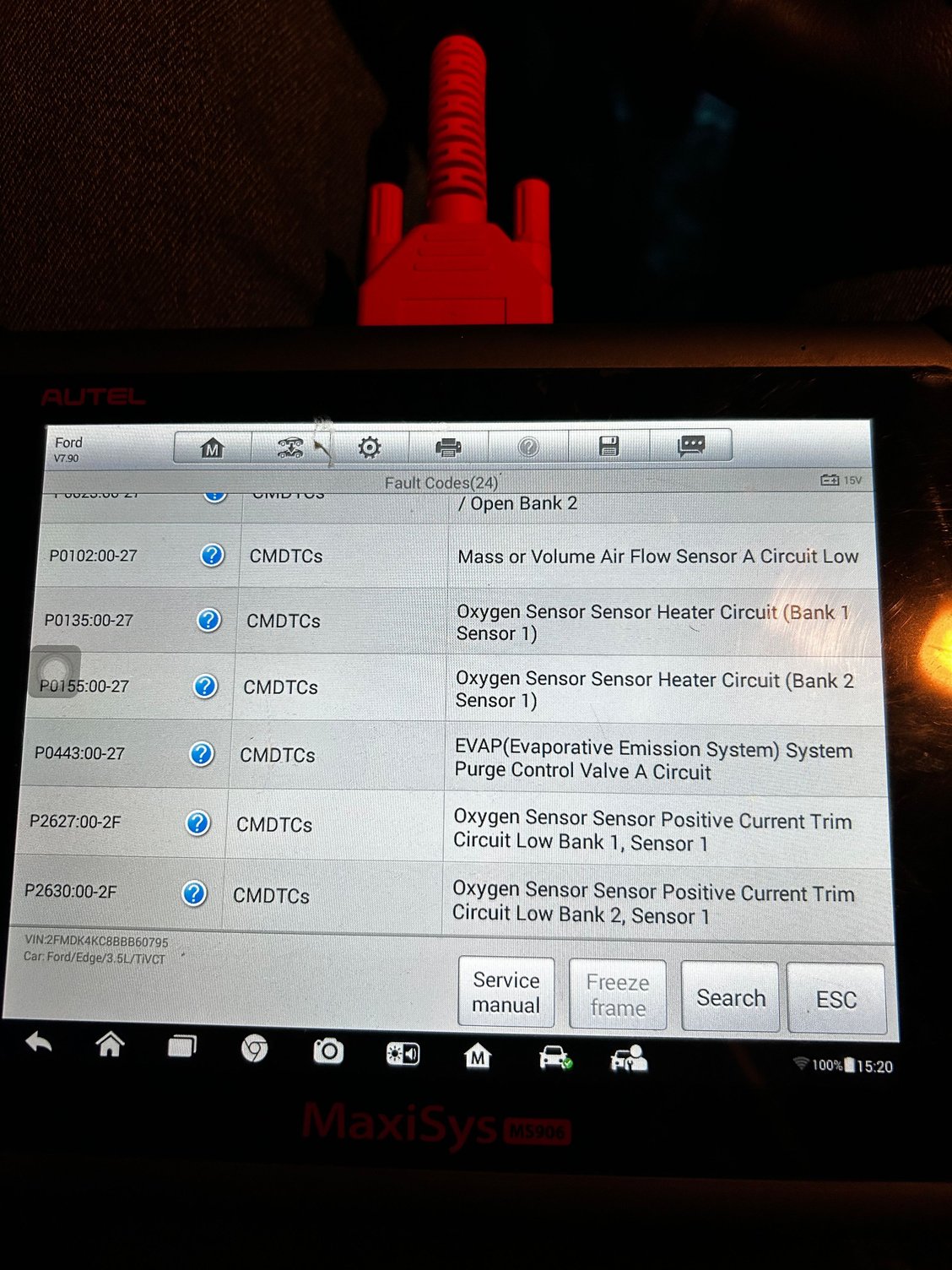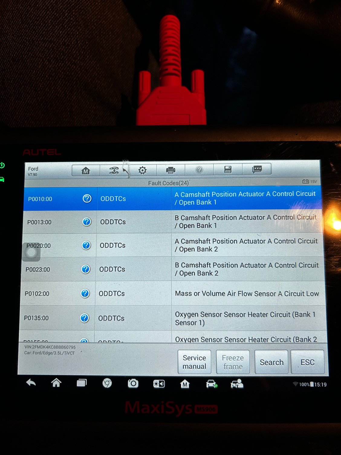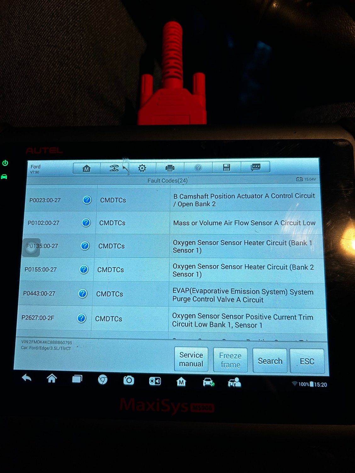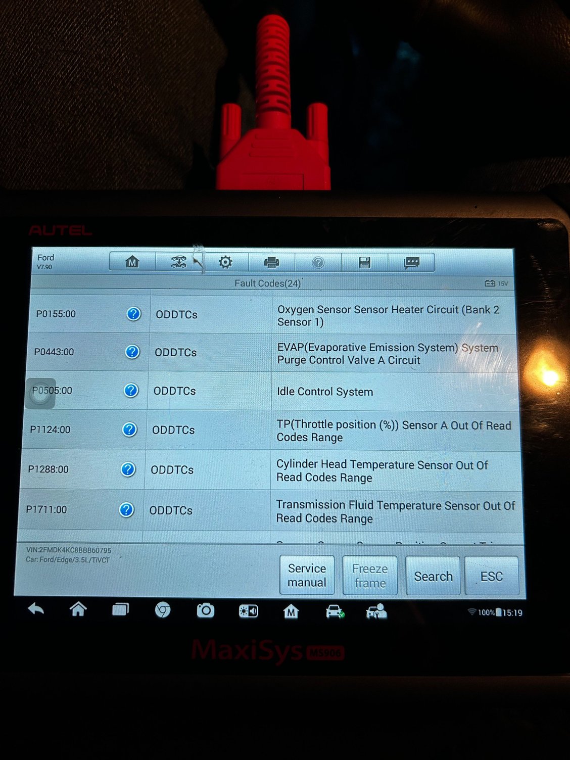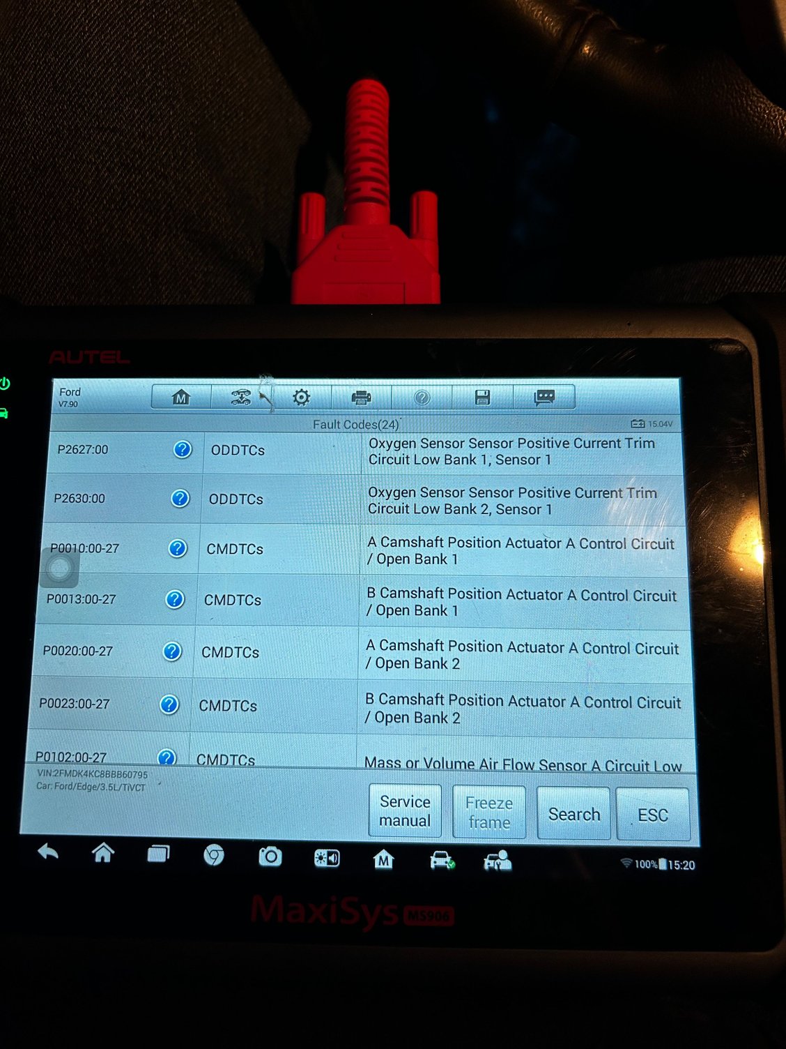 So I have a 2011 Edge 3.5L with about 277,XXX miles. When I was driving home from work the other day the Service Advance Track and check engine light came on. The vehicle lost all power but from my understanding it went into a limp mode. I borrowed a buddies code reader and found it has 24 active codes. From my understanding I have a harness or ECU issue. Does anyone happen to know if there is a common rub spot on these vehicles? I attached the codes that come up.