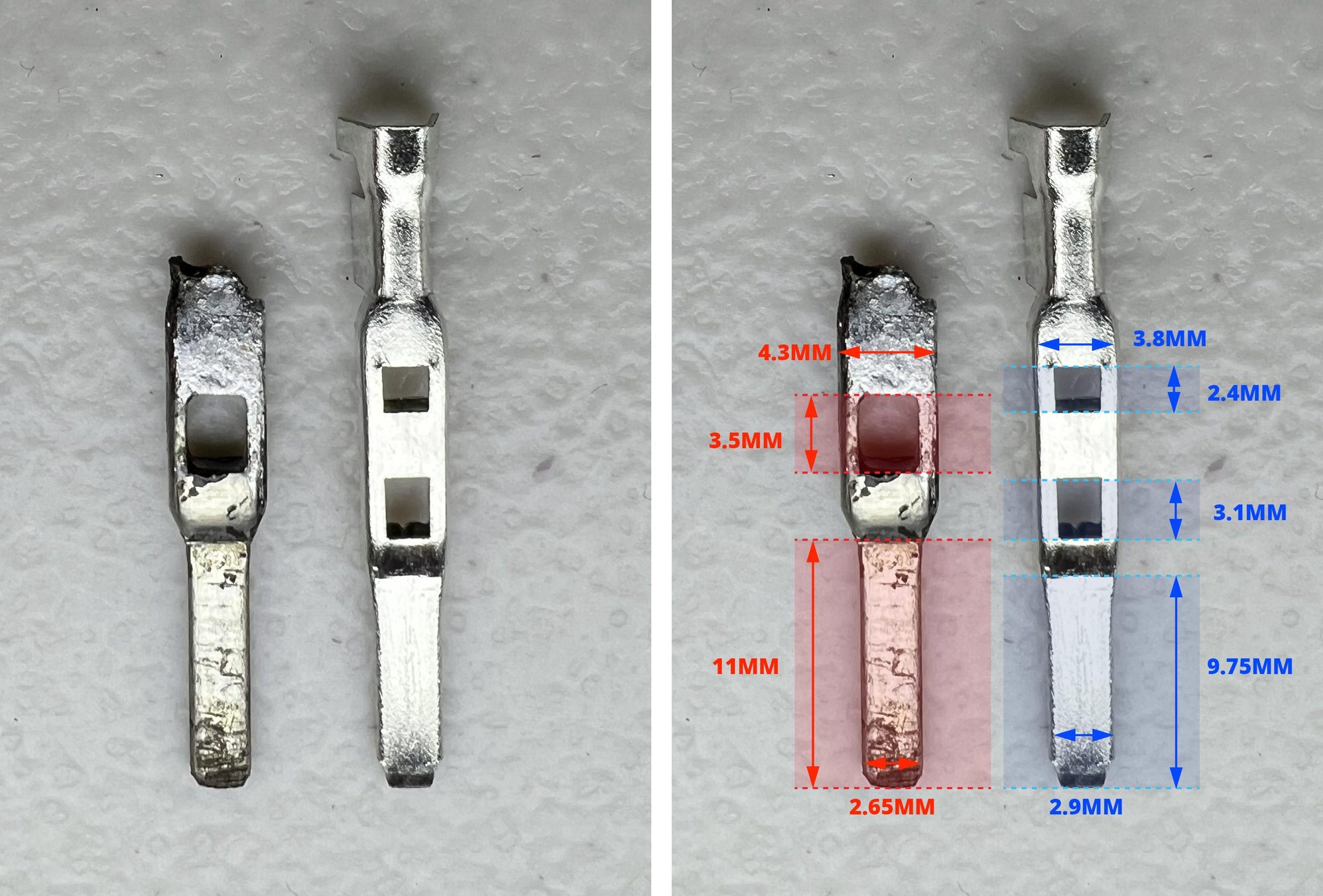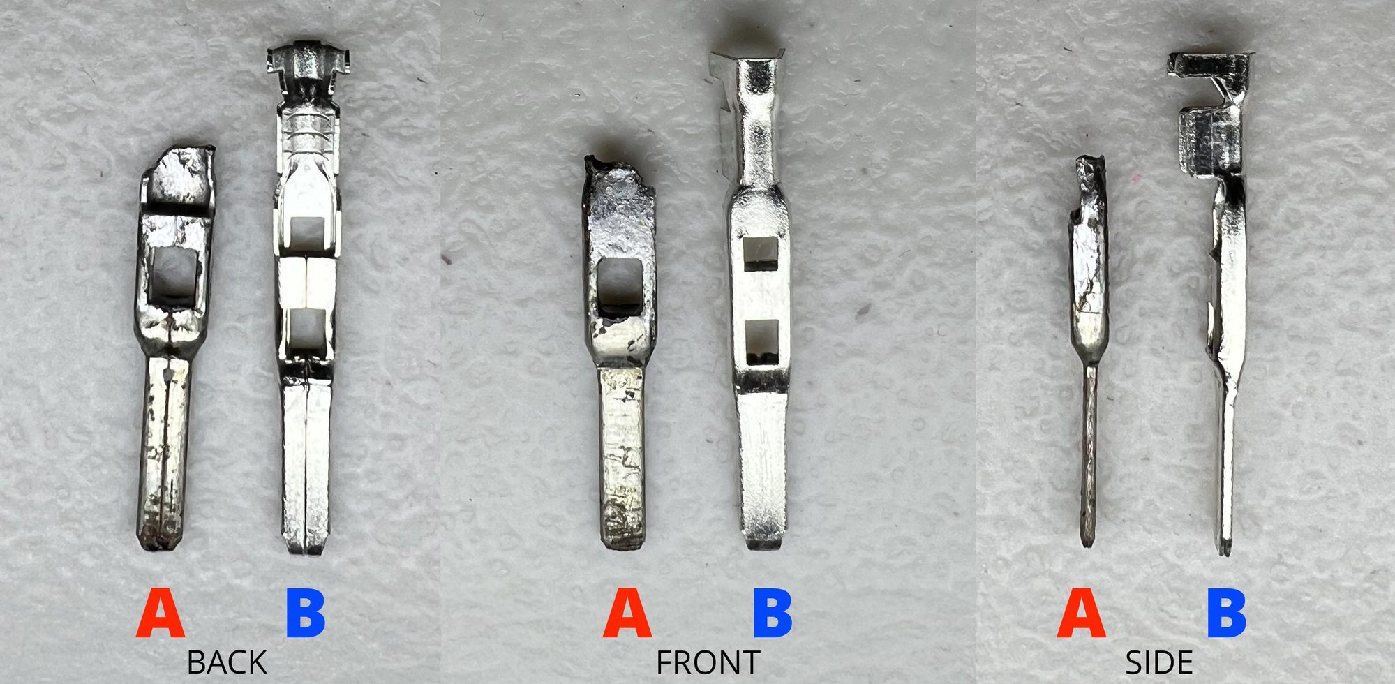 Awesome, thank you heiko! I got the Terminal pins you recommend. It looks like the 2.8mm Series one that looked close to the one that came from the 2014 Edge won't work. I've attached two images to showcase. A (red) = Old Terminal Pin, B (blue) = New Terminal Pin. It was hard to see that there was a second hole in the new terminal pin based on the amazon product images for 2.8mm. Back to trying to figure out which is the correct Terminal Pin
