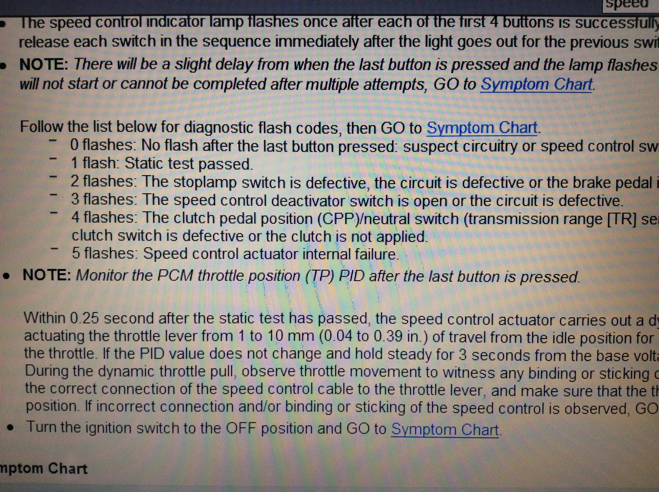 5) before I touched anything and after each thing I tested, I tried doing the "holding the off while turning the key to the on position, then resume, cst and off" and the light on the dash flashed after each button that was pressed, which is suppose to be a self test or something? AFTER I changed out the brake deactivation switch (above the brake pedal) I tried the test again and when I let go of the off the dash light went off and didn't flash/come on when I pressed the other 3 buttons. (edit- apparently I did the self test wrong..... it's press off turn key to the on position then press ON then RESUME then COAST & SET"... UGH I pressed them in the wrong order.. going to rest that right now...)