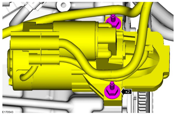 - Remove the starter motor studbolts and then position the starter motor to disconnect starter motor the wiring.