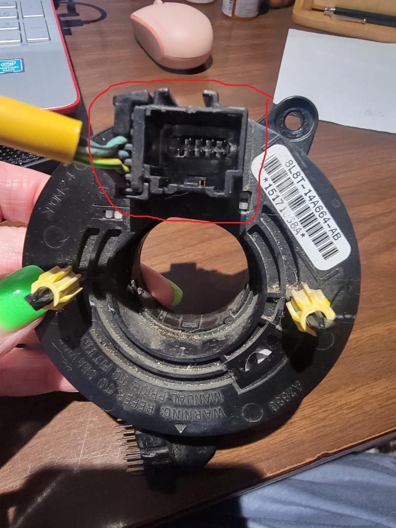 Ok, here's the issue, on my 2008 the steering u-joint coupler went out, it was clanking and had way to much play in the steering wheel to the point it would for a split second make the suv jerk to one side and then it would release then within 10'ish second it would do it to the other side, anyway, we got it replace, problem solved, here's my issue, the stupid airbag clock spring decided to go out UGH, well this is the problem, I'm not finding one that is like the one that came on the suv. Let me explain, the part # is 8L8T-14A665-AB there is a barcode then another # that reads *15171068A* on Fords parts page it shows the same part # but it's a A at the end and not a AB and O'Reilly's shows that same thing , but here's the deal (I've enclosed pics with what I'm talking about circled), the plug in from the vehicle to the clock spring is dead center and the one on the Ford page and O'Reilly's are way over to the left on the clock spring. Pic 1 shows where that plug goes through the back of the steering wheel, pic 2 the front of the steering wheel where the airbag goes on it and pic 3 is the airbag clock spring that was on the vehicle, notice how close it is to the top right hole (small bolt that holds it on), all the ones that keeps saying is a replacement/OEM is way to the left... Can someone please help me figure this out???