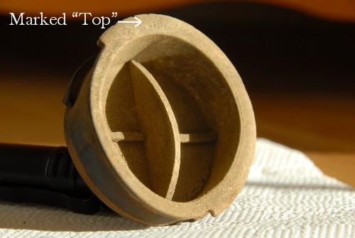 There are two part numbers on the piece: CA 30, and below that F65E-6C070-AC. Also, one side of the part is marked "top."