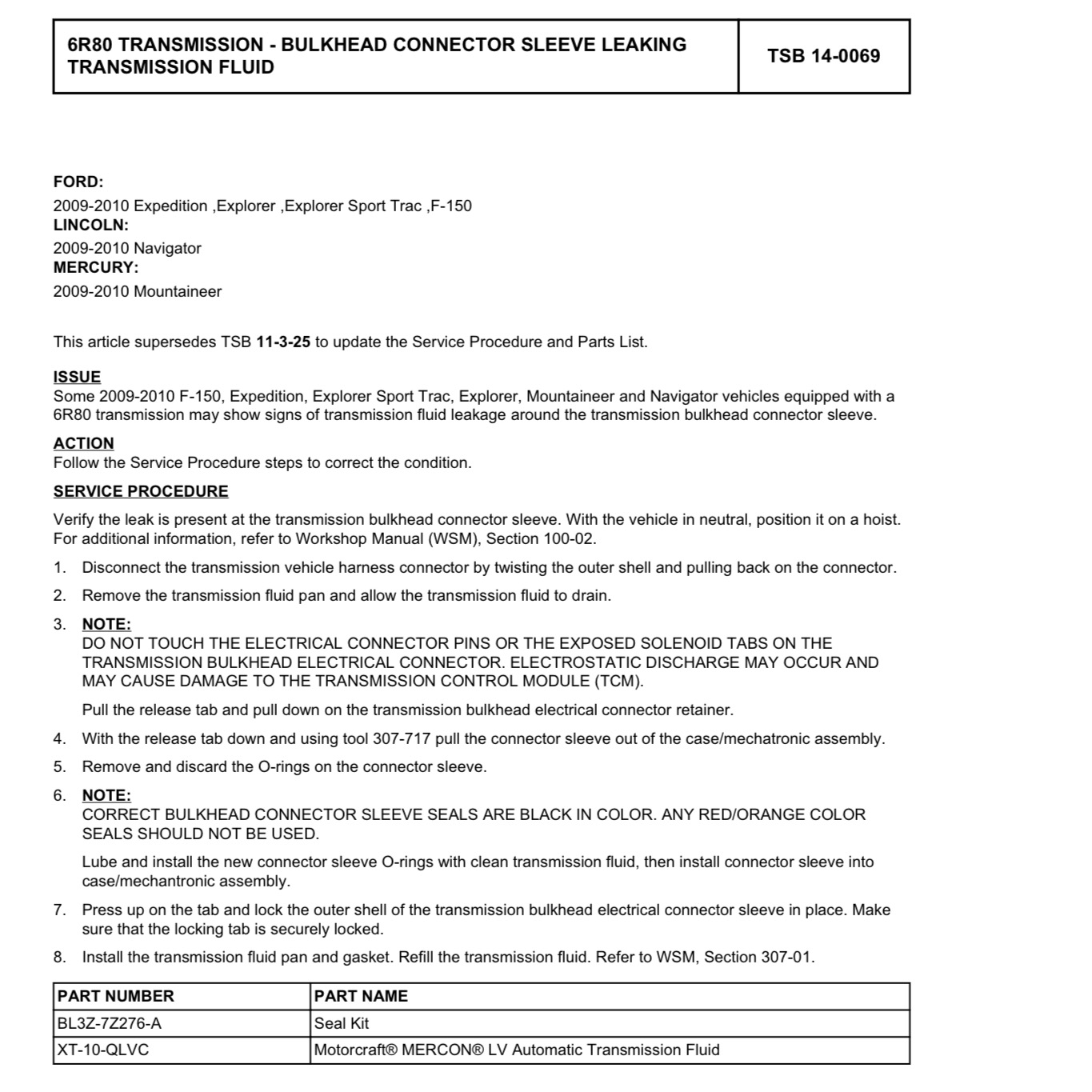 Thanks for the TSB. I had seen this and a couple videos out there. I'm mechanically inclined but not wanting to do this one in my garage since not having a lift handicaps me. Its a little messy too. Its just frustrating that Ford isn't standing behind their products especially when i am a multiple return customer. Plus, getting 3 different price quotes makes me weary of the commish the service managers are trying to get me to put in their pockets. Yeah, i could go to another shop and maybe save $100, but Ford should know how to do the repair properly -having done it hundreds if not thousands of times...