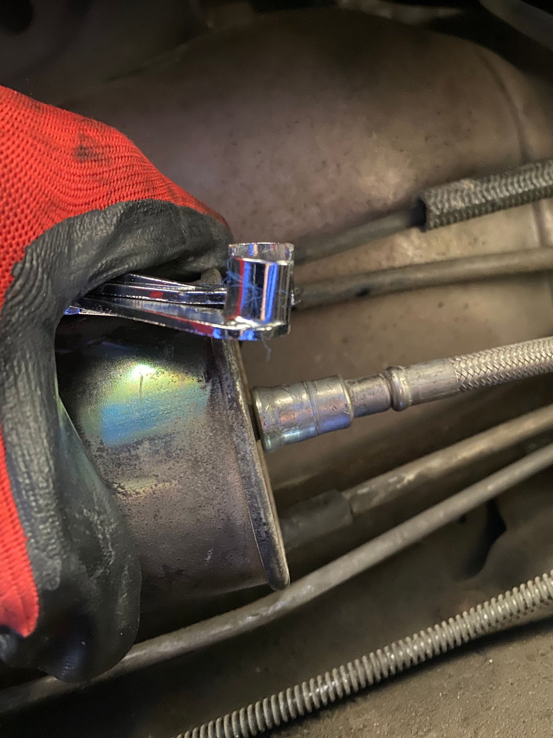 If you take a close look at the earlier pix, you will notice the stems of the correct filter are long enough to slide the connection back. If somebody installed the wrong filter with short stems,you have a problem, which if you don't have the tools and facilities can be a messy and dangerous job.