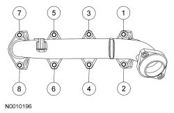 1. Inspect the exhaust manifold. For additional information, refer to Section 303-00.