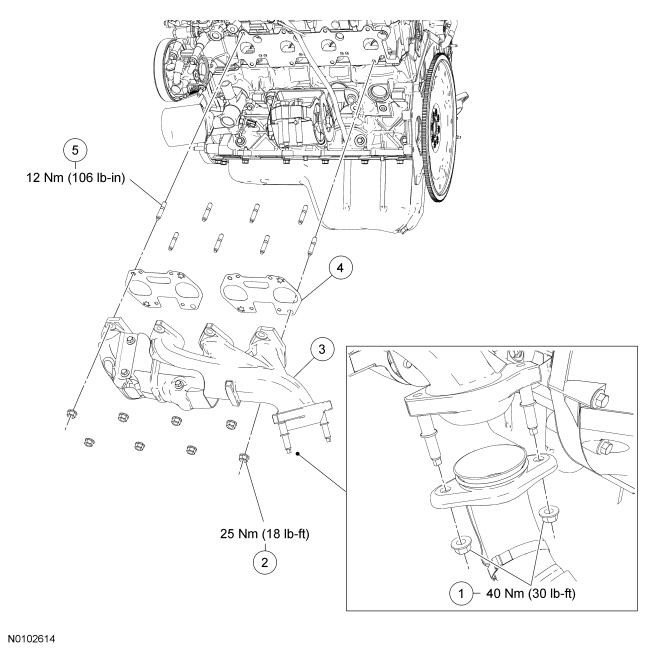 • Tighten to 25 Nm (18 lb-ft) in the sequence shown.