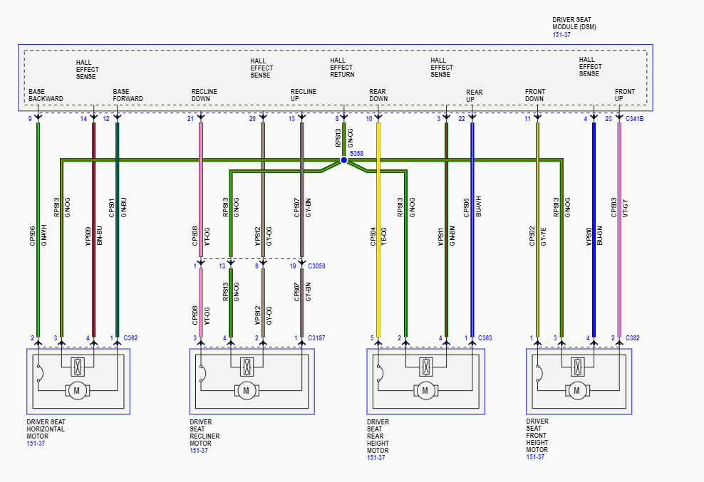 Ok here is the wiring diagrams, as you can see with memory seats the switch sends the signal to the seat module which then sends the request to the seat track motor.