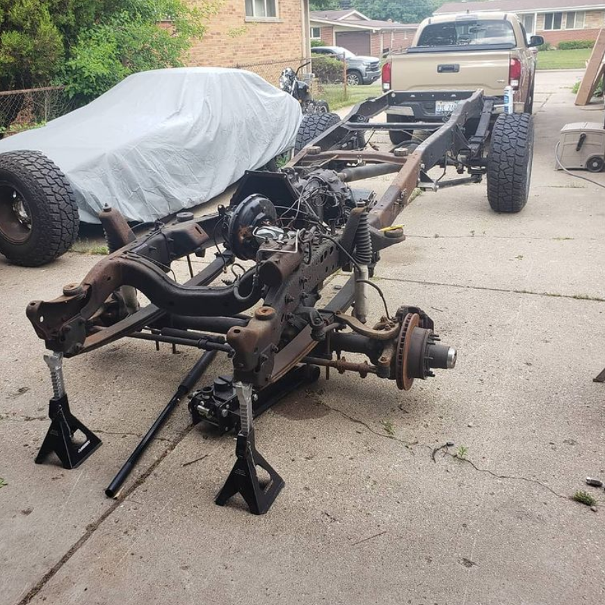 This frame is longer than my truck so it will need to be shortened and welded back together. I will have to make body mounts. As far as the axles go, the stance is nearly identical. If I remember correctly it is only 1" wider.