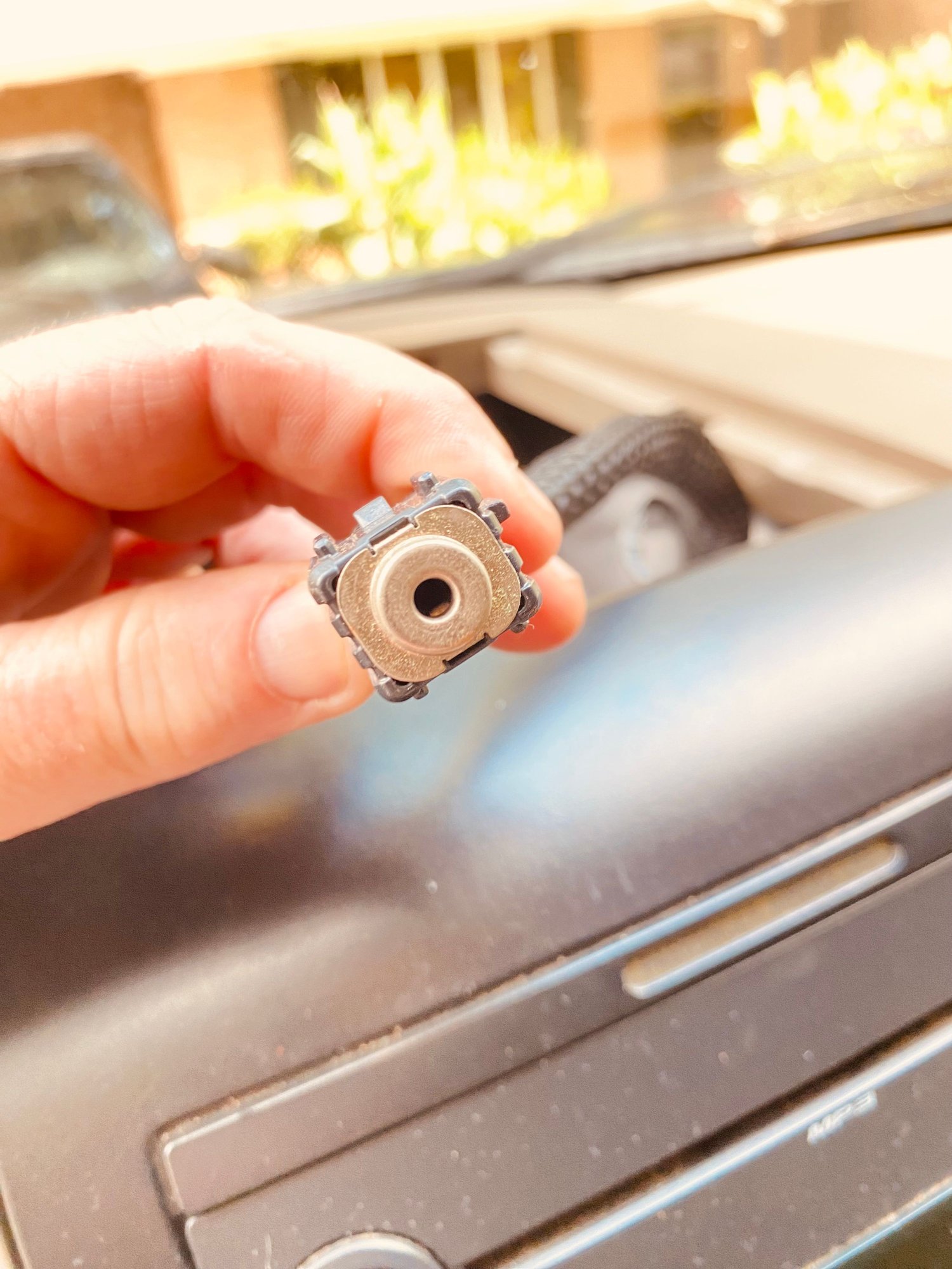 it looks like the aux stereo plug where you can plug in you phone or mp3 player to the stereo.