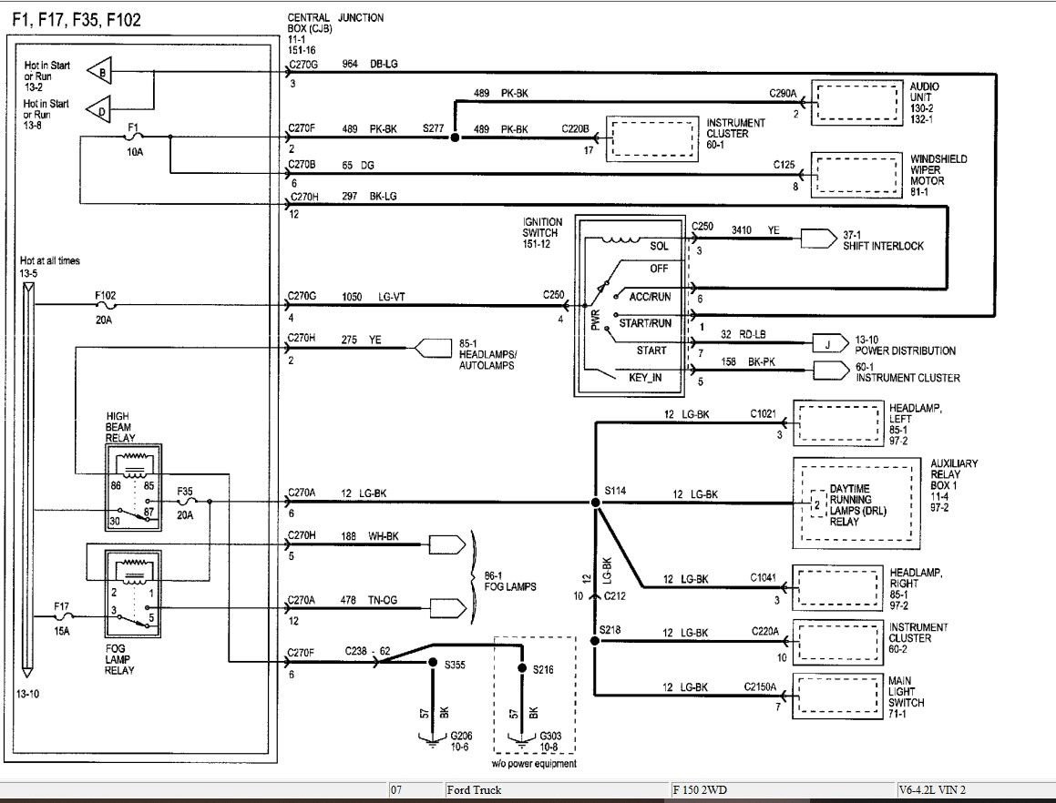 i am doing a ign bypass on my 07 f150 xlt v6 using 2 switches and a push button sw. i need wiring blueprint of what wire to put where. my colors are blk/red blk/green green/blk blue/green yellow red/ blue with blue/green and green/blk being slightly bigger wire
