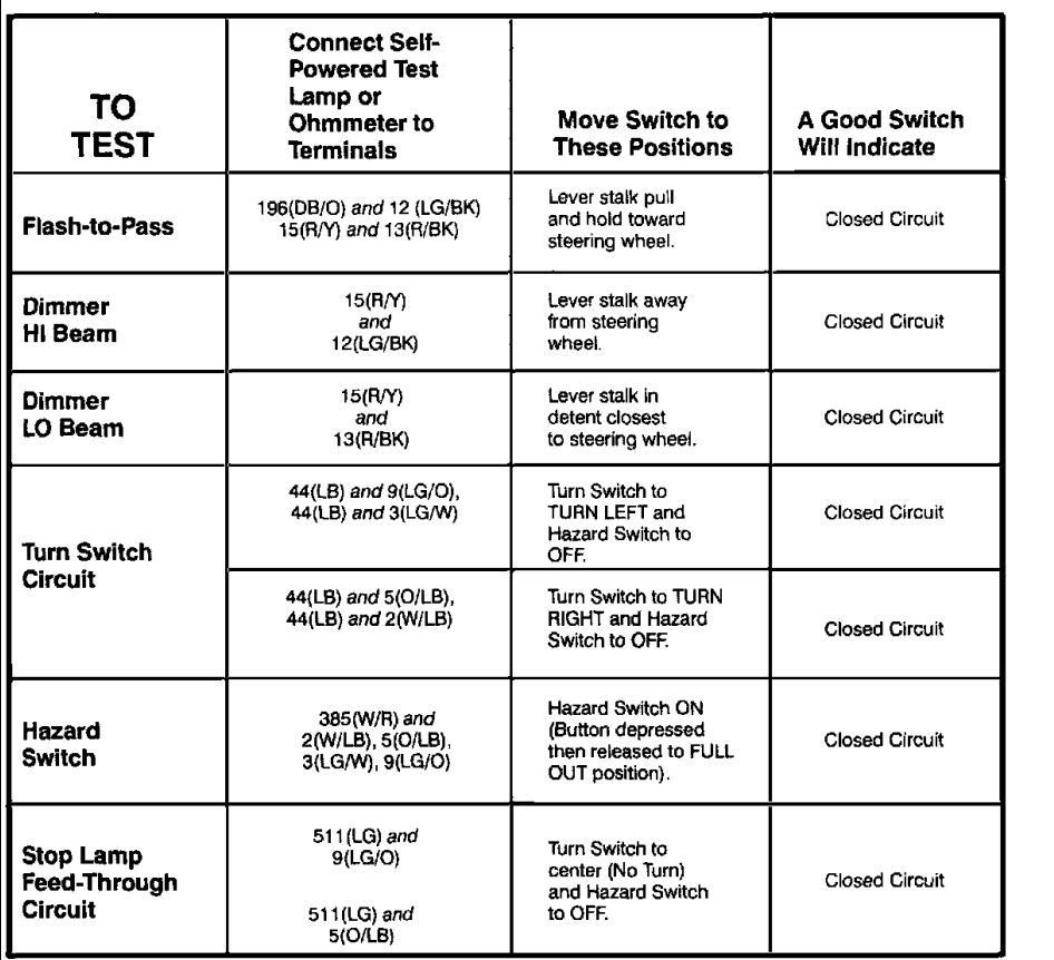 For testing purpose, you can bypass the flasher relay, look at electrical diagram part 1 above, circuit 8 to flasher relay then to circuit 44, you can connect jumper wire directly from 8 to 44, just that, for testing purpose, the lamp stays solid and won't pulse. You can also borrow the flasher relay from hazard for testing purpose.