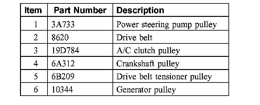 If you decide to replace # 2 and # 5 shown above, get this belt: Gates K060840HD the green belt if available for your car and this belt tensioner assembly: and don't buy Motorcraft JK6844C belt. The HD green belt from Gates is the best possible belt you can get for your car if Gates make this green belt.