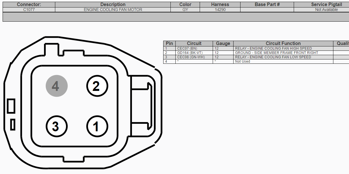 Cooling fan, high speed relay - 12 v is on pin #2 Cooling fan, low speed relay - 12 v is on pin #1