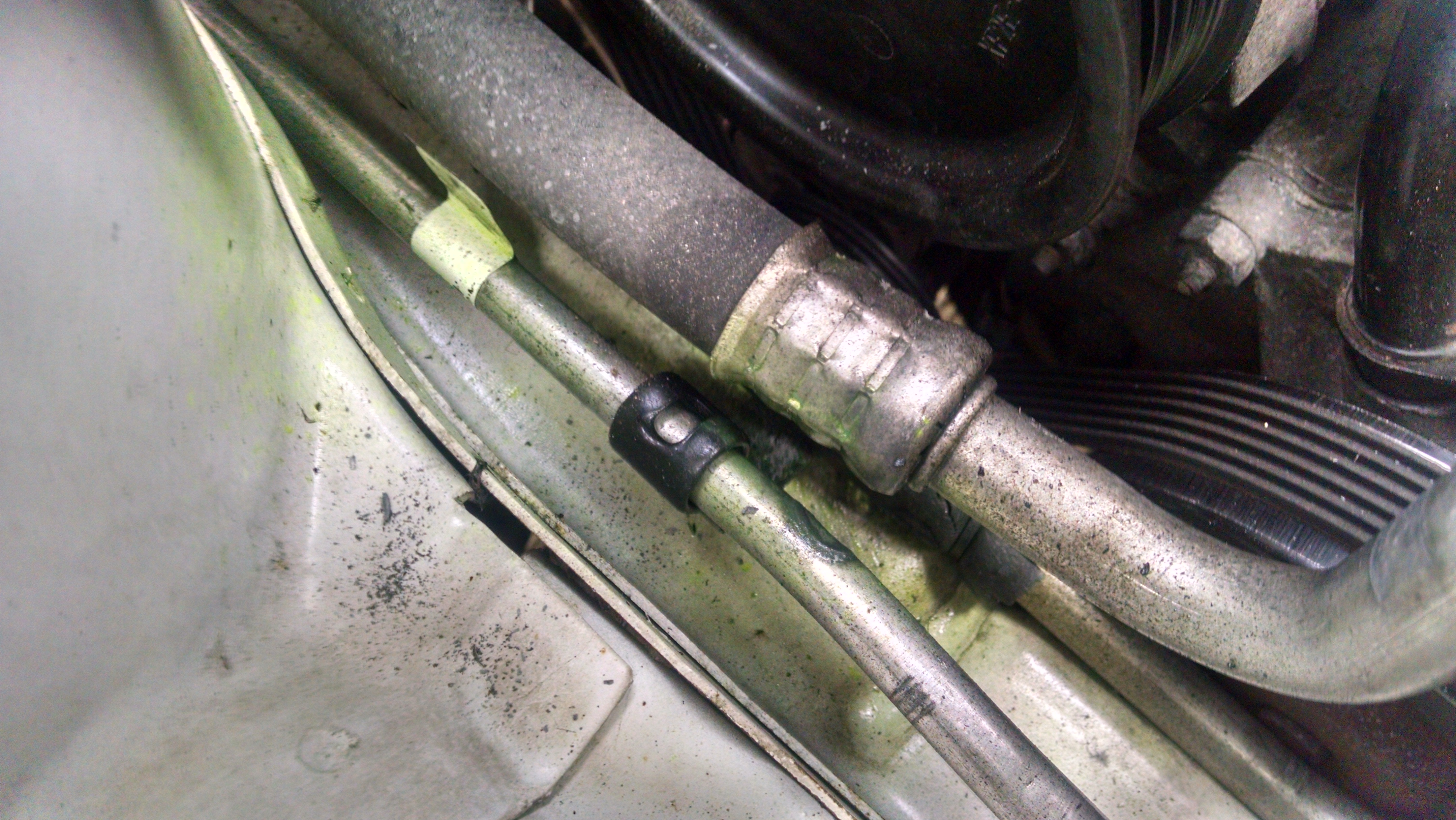 Well, was 92° Saturday here in my neck of the woods in Western NY. Was tooling down the highway with a cool comfy breeze on my face when I noticed it getting warmer and warmer. Then it was just plain HOT. Checked and sure enough, no A/C compressor engagement. Got home and slapped the gauges on the A/C and sure enough, no pressure. System was completely empty. Gotta be a leak somewhere, so I put the nitrogen to it and sure enough, hear the hissing just below the accumulator area. Yep, leak detect everywhere. Tore the system apart and what do I find? A wear hole in the liquid line. Apparently the $29,000 sticker price of the van didn't include the missing $.03 hold down bolt for the bracket. Heck, I would have paid $.15 for the bolt. So, I cut the bad spot out, went to the hardware store and got a 1/2" compression line coupler to reconnect the line. Went ahead and installed a new front orifice (good thing as it had some crud build up on it) and buttoned everything back up. Pulled my 2 hour vacuum and charged the system back up. All is well at this time. Nice and cold...
