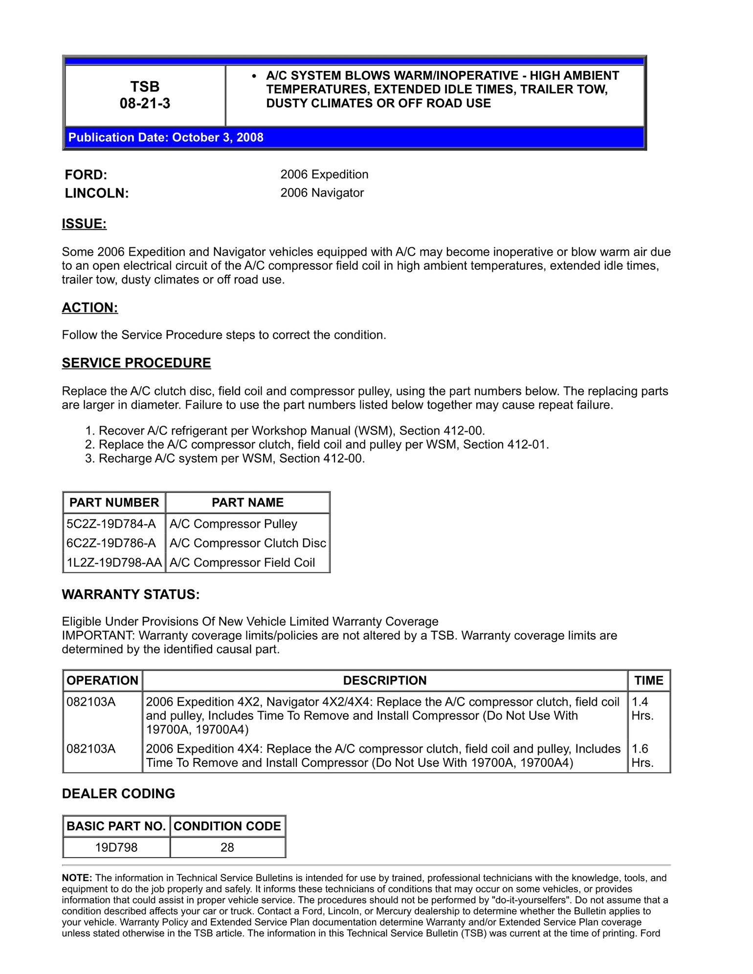 My expedition about a year or two ago started having the A/C blow warm air, so we had it taken in