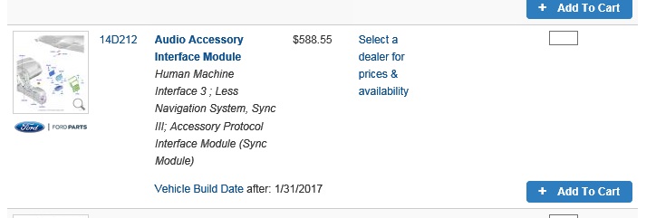 When I search the Ford part websites, it shows the SYNC 3 schematic and labels out the parts. However, these parts only contain a 5 digit code, and not the typical XXXX-XXXXX-XX scheme. If they only show the 5 digit code, which I assume is the center 5 of the part number, will any part with that 5 digit identifier work, even if its from an F-150 or Escape?