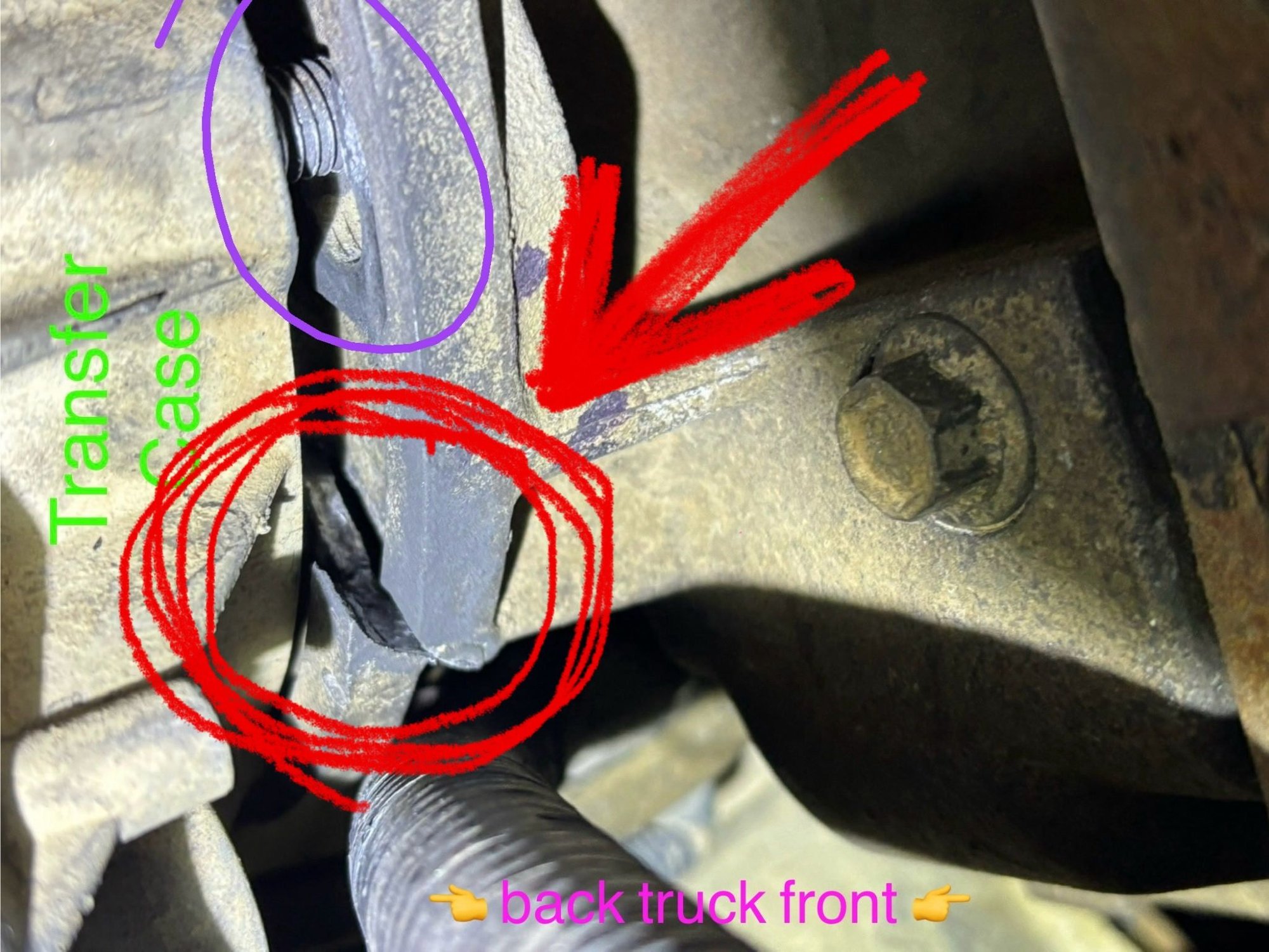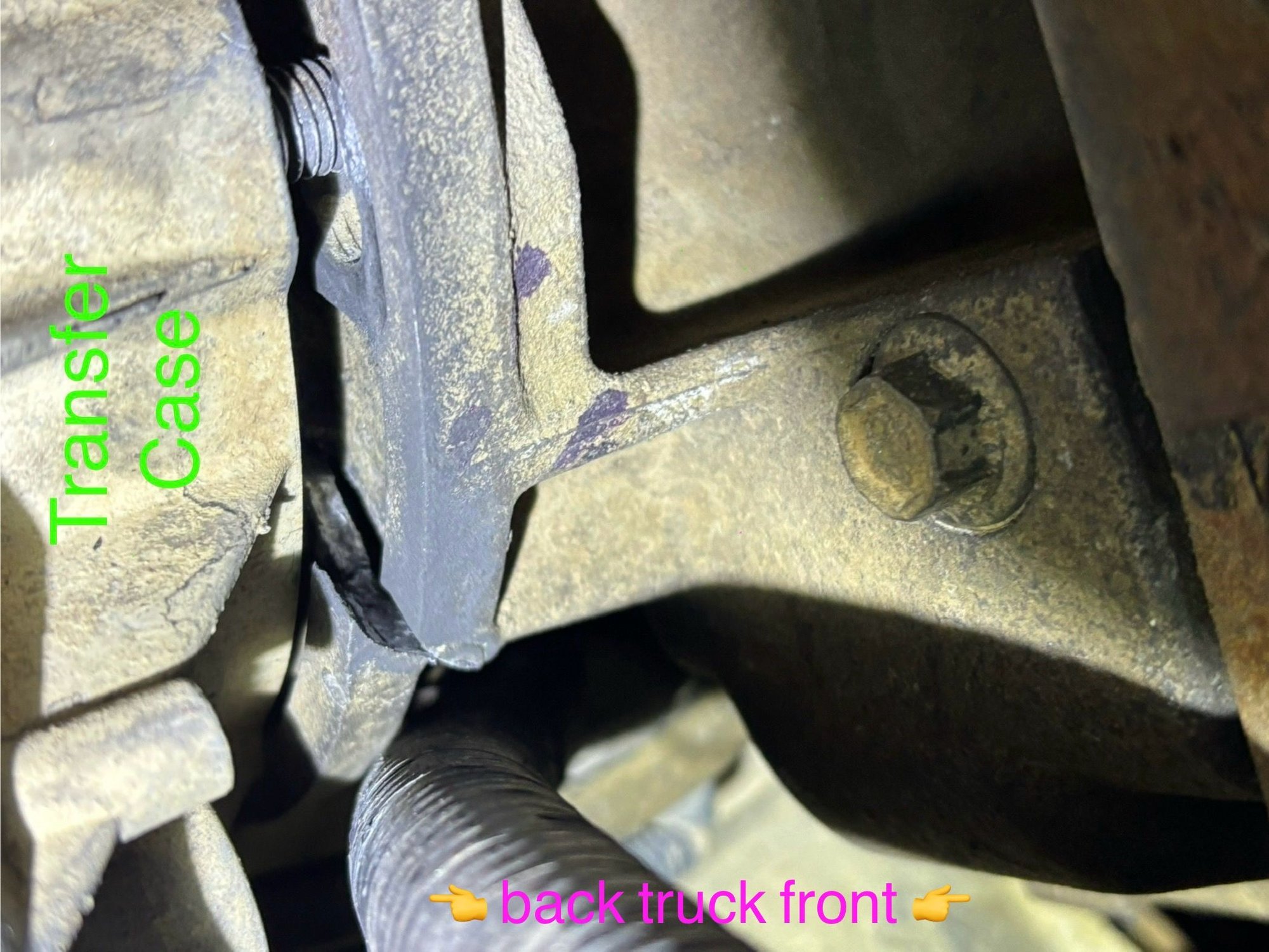 It does appear the front drive shaft tried to move the transfer case rearward and the mounting didn't agree.