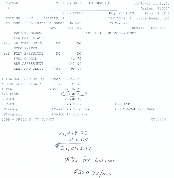 I am about to purchase a 2013 Ford Focus SE with my Z-Plan and I want to make sure there is no more wiggle room for me to talk the price down more before I pull the trigger.