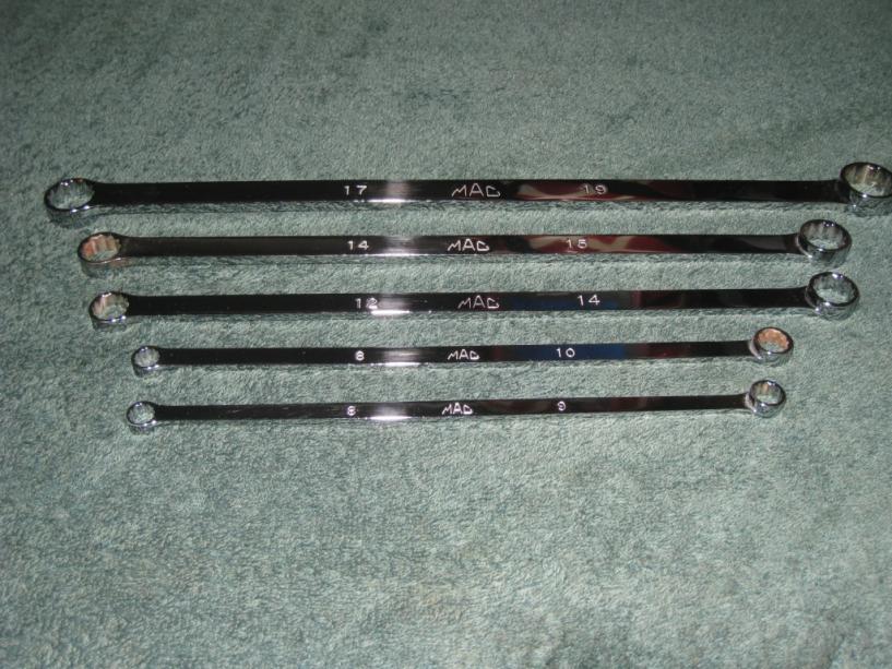 Hey Guys, let me start by saying that I AM NOT A DEALER OF ANY SORTS. I made a score on some MAC wrenches. They are BRAND NEW factory seconds. They are brand new with minor blemishes in the chrome. When I say minor, I mean minor. If I did not point this out to you you would probably never know. They are MAC Performance, Extra Long, Double Box high end Wrenches. They are all metric wrenches & they are bucu bucks off the truck. Shipping is included in the price to the lower 48 states. Anywhere else will have to be calculated. My email is mikepranski@hotmail.com You can check my feedback on Ebay. My username is giutarmaster. Notice the spelling on my username. The I & U in giutar are backwards.