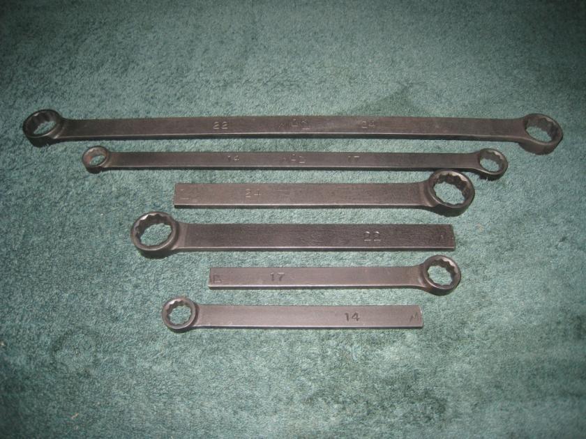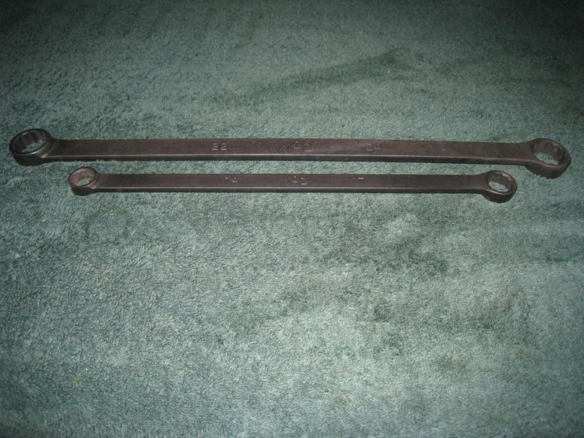 to keep in the car for personal protection. They are 14/17mm & 22/24mm. The 14/17mm is $55.00 new & the 22/24mm is about $70.00 new. You can have a set of these two wrenches for $45.00 shipped. If you really want to get the most out of these buy 2 sets & cut the one set in half like I did. (see pictures) It is like having a set of box end stubbys. I can do two sets of these shipped for $70.00