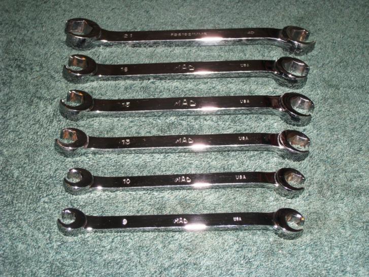 I also have a set of used wrenches are MAC Flare Nut/ Tubing wrenches. These also were over $250.00 new. These are priced also at $125.00 shipped. Man these things are really nice. I have a set of the Craftsman Professional series flare nut wrenches & these MAC wrenches blow them out of the water. There is no comparison. I will probably kick myself down the road later for letting these go. Hurry up & buy em' before I sober up & change my mind! These are a 6 piece set that includes: