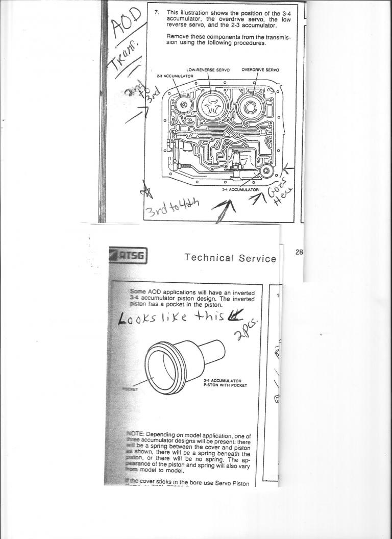 I need to buy 2 AOD transmission 3-4 accumulators(some call them servos). I cannot find them anywhere. I can find the 2-3 but no-one has the 3-4. I have contacted every transmission shop that google gives you when you type in this info and they have never heard of a 3-4 accumulator. I must have them for a 1986 Mustang 302 transmission. I will not give up. I must find them for my boss--I cannot fail at this! Please help someone!! I will pay shipping charges or whatever it takes. I will upload a picture showing where this part goes in a tranny. Thank you, Kathy with a "K"